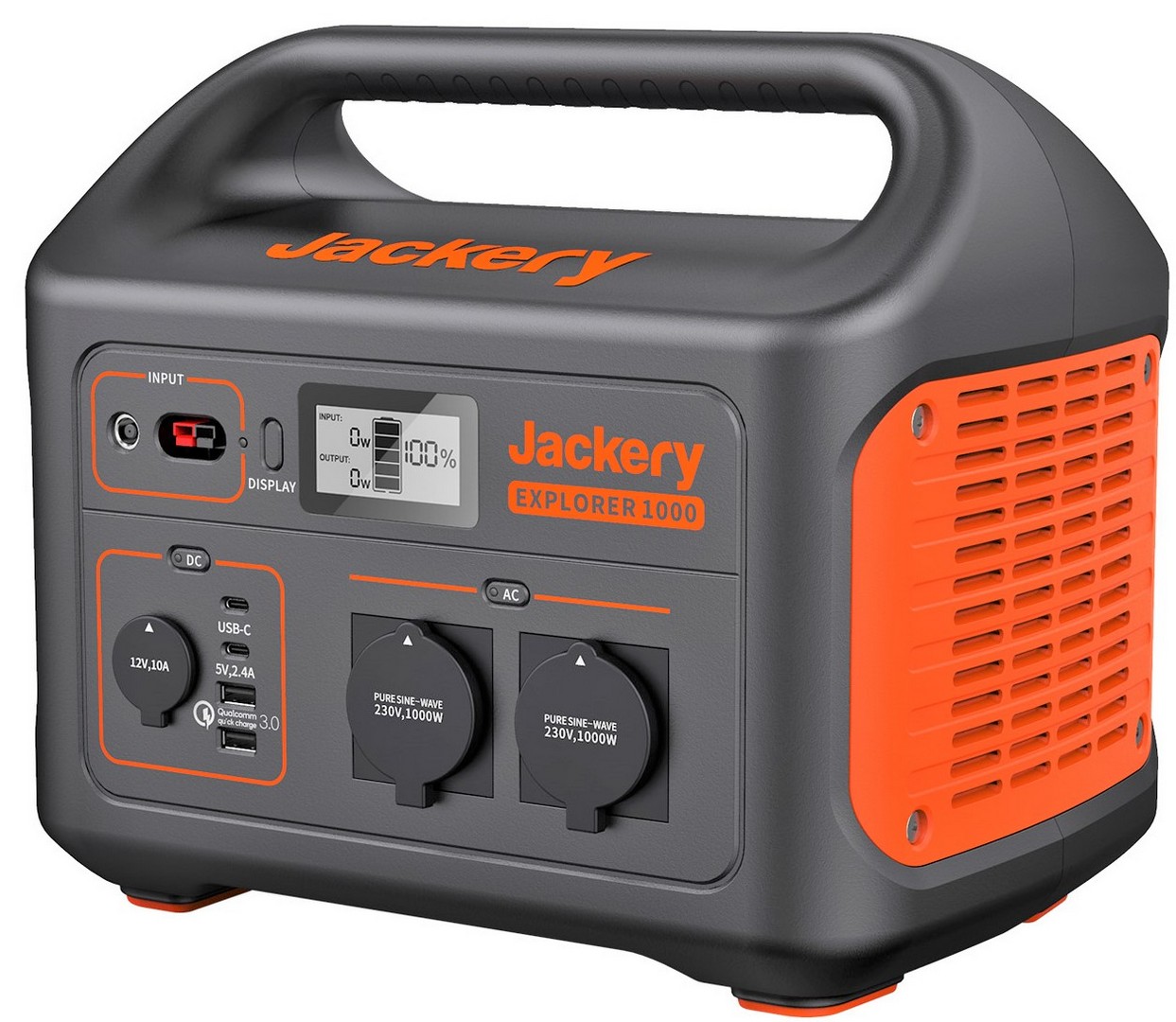 Акумулятор Літій-іонний - 46,4Aг / 21,6 В (1002,2 Вт*г). Вихід змінного струму - х 230В~ 50Гц, 4,34А, 1000 Вт постійна потужність, 2000 Вт пікова потужність. USB-вихід USB-A: 5В = 2.4A 2 х USB-C PD: 5В = 3A, 9В = 2А, 12В = 1,5А, Qualcomm® QuickChargeтм3.0: 5-6.5В = 3A, 6.5-9В = 2А, 9-12В = 1,5A. Вхід постійного струму - 24В = 7,5A (Підтримує 12-30В). Вага - ~10кг. Розміри - 333 х 233 х 283мм