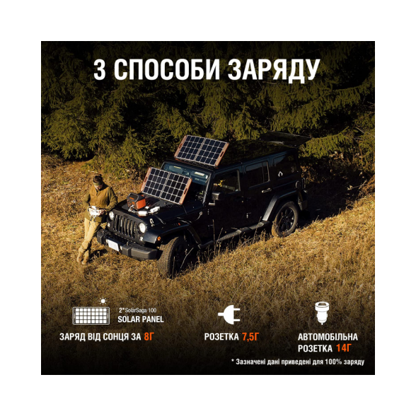 Використання сумісно - СОНЯЧНІ ПАНЕЛІ JACKERY SOLARSAGA 100W (ЗАРАДЖЕННЯ БАТАРЕЇ ГЕНЕРАТОРА).