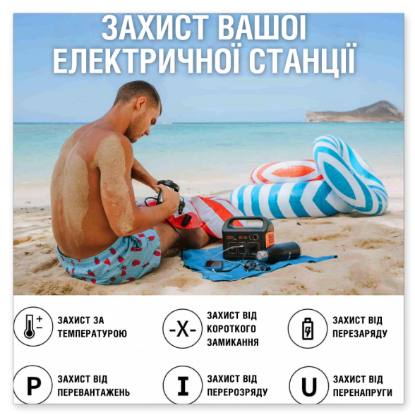ресурс, Вихід змінного струму - 230В~ 50Гц, 2,17А, 500 Вт постійна потужність 1000 Вт пікова потужність.