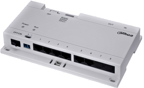 КОМУТАРОР POE 24 вольт живлення моніторів домофону по мережевому кабелю (віта пара) та мережеве Ethernet 10/100МБит/c з’єднання домофонної системи. Працює з окремим блоком живлення котрий вибирається керуючись навантаженням що залежить від кількості підключених приладів. Комутатор підтримує 8 моніторів та має два звичайні Ethernet 10/100МБит/c порти для підключення до локальної мережі.