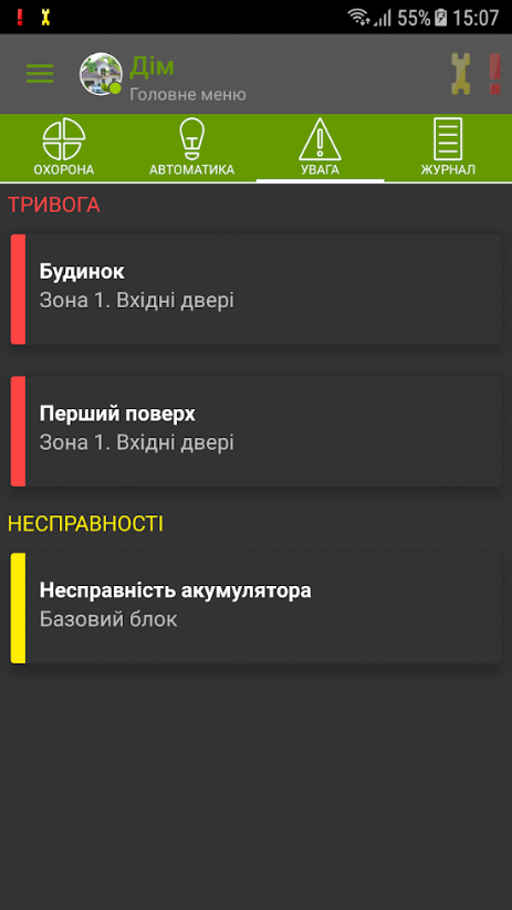Розділ повідомить про отримані сповіщення з охоронних