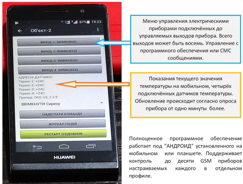 GSM контролер працює через інтернет з програмою для «АНДРОЇД», що дає можливість налагодить візуально максимально зручно для користувача. Таким чином ви можете отримувати СМС повідомлення та одночасно на ПО мобільного.