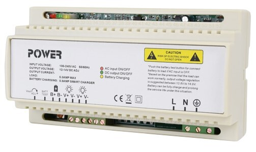 Безперебійний блок живлення імпульсний, двоканальний, для кріплення на DIN-рейку. Живлення AC100-240V / 50-60Hz клеммник, вихідна напруга DC12...14V/5A, клеммник. Захист від перенапруги, КЗ, перевантаження по струму, а також захист заряду / розряду акумулятора. Корпус пластиковий. Розміри: 158 х 87 х 63 мм.
