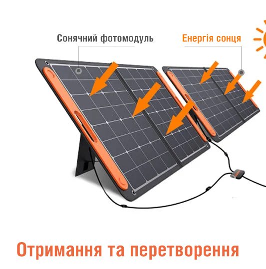 Встановлення сонячних панелей на буть який не рухомій поверхні з максимальним отримання променів сонця. Елементи приладу отримуючи сонячне світло перетворюють в електричну енергію.