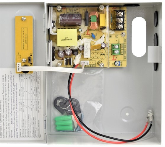 Безперебійний блок живлення імпульсний, вихід: 12В/3А, клемник; вхід: ~100-240В, клемник; металевий корпус з кришкою і замком; стабілізація напруги, захист від глибокого розряду. Можливе встановлення акумулятора 7Ah. Розміри 203 х 163 х 72 мм