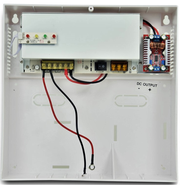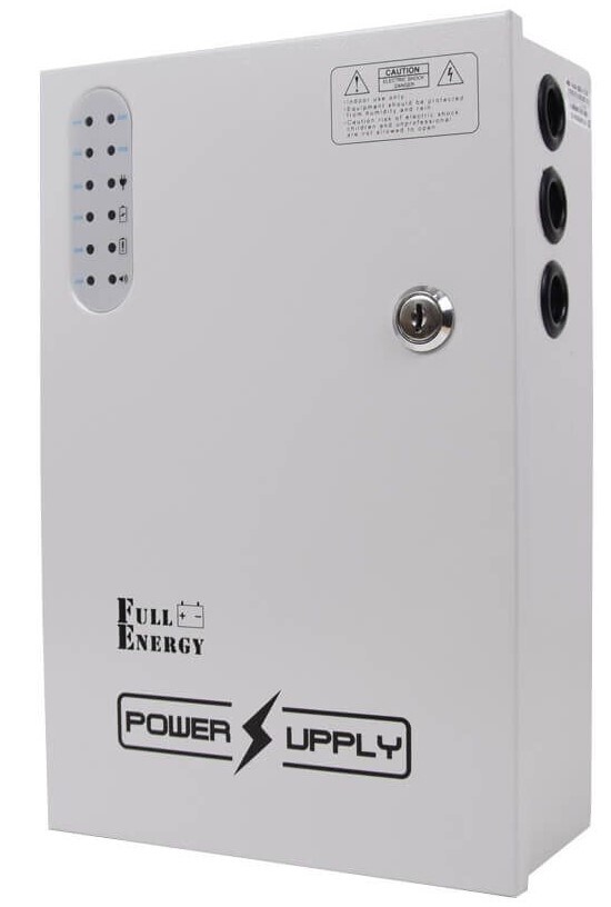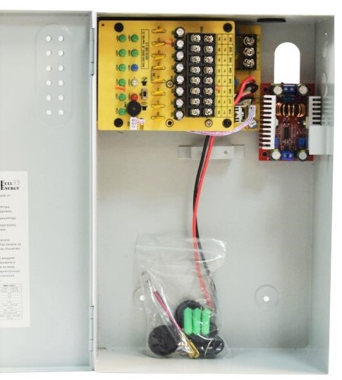 Безперебійний блок живлення імпульсний, 8 каналів + 1 канал PoE. вихід: +12В/10А (8 каналів), клемник, +48В до 60 Вт (1 канал для PoE), кабель живлення; вхід: ~170...245В, клемник; металевий корпус з кришкою і замком; стабілізація напруги, захист від глибокого розряду. Можливе встановлення акумулятора 1.2Ah, 2.2Ah, 4Ah, 7Ah, 18Ah. Розміри: 300 х 190 х 90 мм