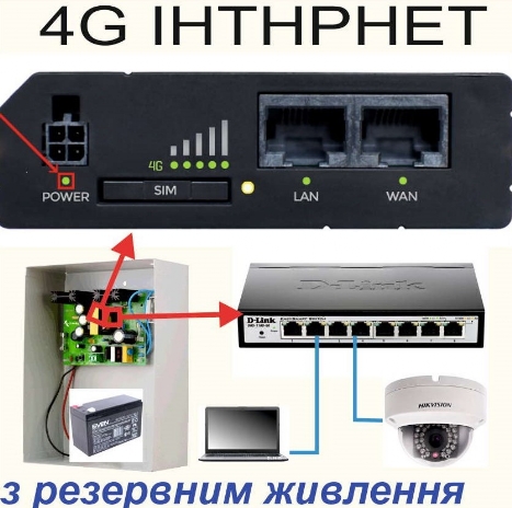 Безперебійний інтернет з резервним живлення виконується використав маршрутизатор RUT240 котрий працює з кабельним інтернетом з можливістю автоматичного перемикання на 4G інтернет мобільних операторів. Живлення виконується безперебійним пристроєм в складі акумулятора від ємкості котрого буде залежати час роботи. Модем маршрутизатора RUT240 має сертифікат відповідності для застосування в мережах мобільних операторів в Україні, забезпечує якісну роботу 4G інтернету. Виконаємо рішення побудови інтернет мережі відповідно ваших технічних завдань.